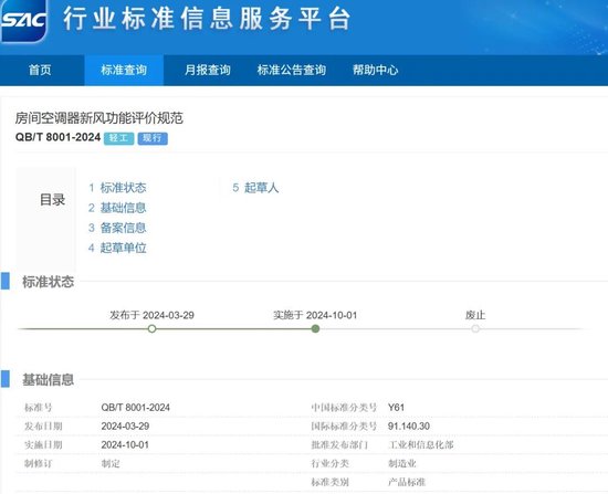 2020年3月,海信牵头制定家庭新风空调首个团体标准,后又主导制定了《带新风混合功能的房间空气调节器》等。2024年10月,海信起草的中国家用新风空调首个行业标准《房间空调器新风功能评价规范》正式实施。该标准明确了对新风空调进行测试与评价的通用要求、性能指标、功能规范及试验方法,并为产品分类提供了技术依据。